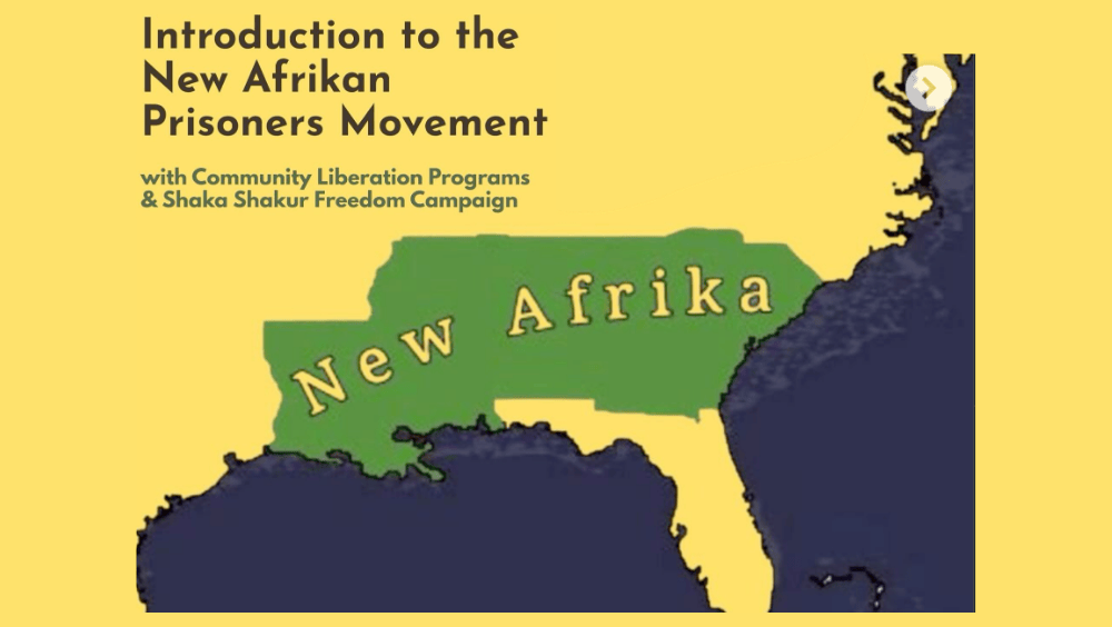 We will cover the ways that New Afrikan political prisoners in particular became the theoretical architects and visionaries of The New Afrikan Independence Movement (NAIM), a national liberation struggle that had experienced severe repression by the end of the 1970’s. Officially established in 1968, NAIM developed a Black nationalist political framework and praxis rooted in the establishment of The Republic of New Afrika (RNA), a Black nation-state in the U.S. South in the lands of Louisiana, Mississippi, Alabama, Georgia, and South Carolina.